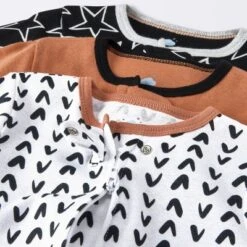 Create tons of cute looks this Halloween by dressing up your baby in the pieces from the 4-Pack of Halloween Long-Sleeve Bodysuits from cloud island™. This baby bodysuit set includes two solid colors, one in orange and one in black, plus one with black and white stripes and one with polka dot and pumpkin print on a white backdrop. Made with 100% cotton in a single-layered construction, this long-sleeve bodysuit set offers soft and breathable comfort. Plus, the lap shoulders and crotch snaps make dressing and diaper changes a breeze.